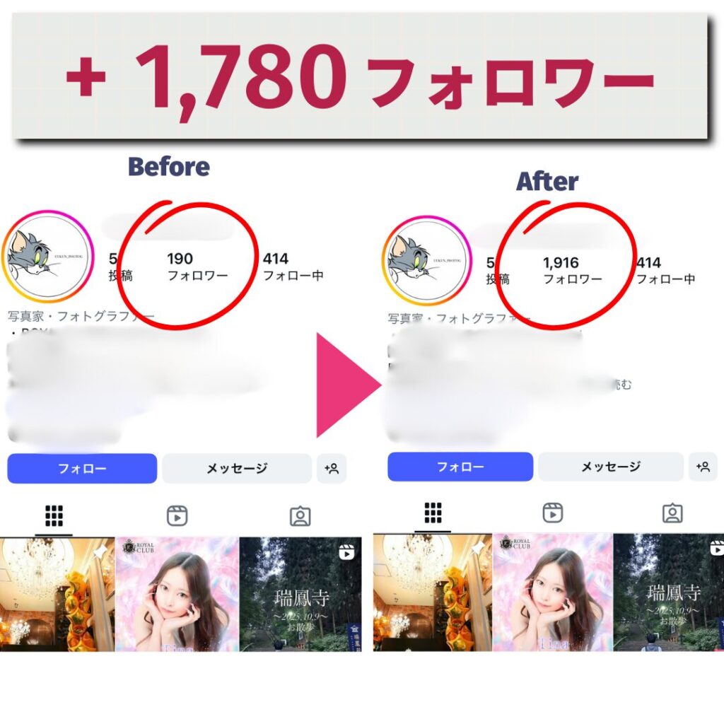 こういったフォロワーのみが増えていきますので、安心してインスタアカウントを成長させていくことができます。