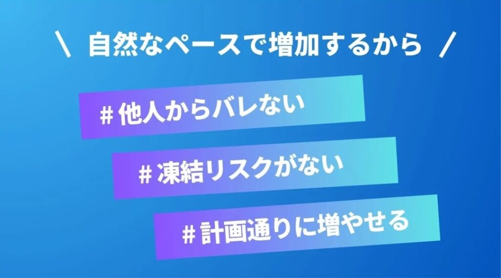 自然に増えていくから他人からバレず、安全に、計画通りに。目標とするフォロワー数まで成長が実現できます。